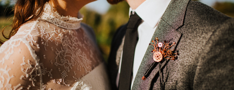 I have created a number of Steampunk inspired pieces since I first developed my own copper cogs, from Alternative wedding bouquets, buttonholes and hair accessories to lapel pins, stud earrings and even ear plugs. Sometimes I use the cogs individually and occasionally I'll combine a variety of cogs together, as shown in the bangles above and the necklace below. This Steampunk necklace is a combination of cogs joined together and wired into place rather than using soldering. I used this method for two reasons, copper is an impressive heat conductor, so therefore soldering is a massive challenge, especially for multiple pieces and joining the elements with wire, gives some flexibility to the necklace, allowing movement on the body when being worn. The necklace is threaded on ribbon as this contrasts beautifully with the copper and reflects the Steampunk Inspiration, see the photo sneakily snapped by Vicki Clayson Photography, of me putting the finishing touches to a few pieces at The Old Cow Shed earlier this year.